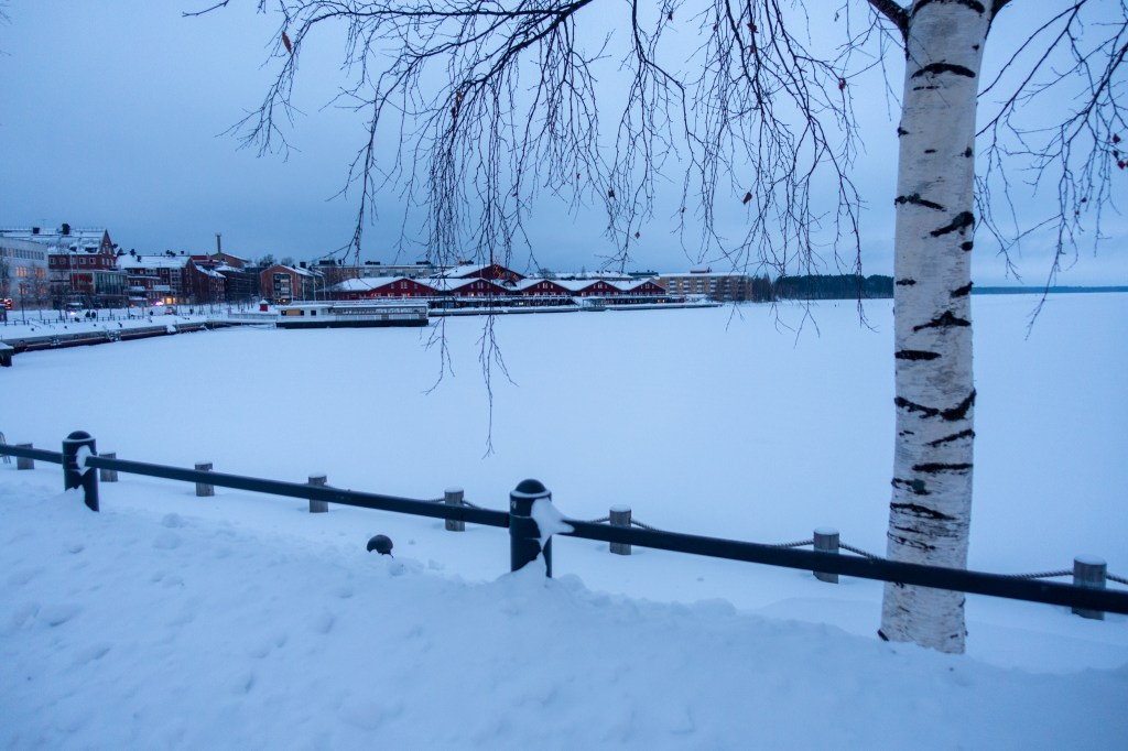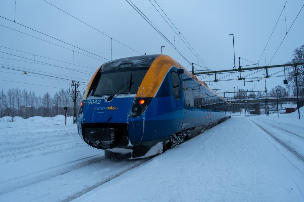 Vy Norrtåg brachte uns heute in rund vier Stunden von Umeå nach Luleå. Die Strecke führt durch das schwedische Inland und neben kleinen Siedlungen sieht man vor allem Bäume, manchmal auch Bach- oder Flussläufe und Seen.