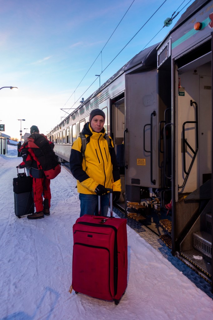 Die Reise dauert rund drei Stunden und ist deutlich gemütlicher als die bisherigen Bahnfahrten in Schweden. Der Personenzug muss immer wieder warten, damit die 11 bis 13 täglichen Erzzüge verkehren können. Auf der schwedischen Seite führt die Strecke leicht ansteigend immer mehr ins Gebirge, aus den Hügeln werden Berge und die Seen sind alle gefroren. Nach dem Grenzübergang bei Riksgränsen geht es dann auf rund 40 Streckenkilometern von 513 m wieder hinunter ans Meer, welches in Narvik nicht gefroren ist. Dieser Umstand ist auch der Grund, warum die Bahn damals gebaut wurde. Der wegen des Golfstroms eisfreie Hafen war für den Weitertransport besser geeignet als die Ostsee.