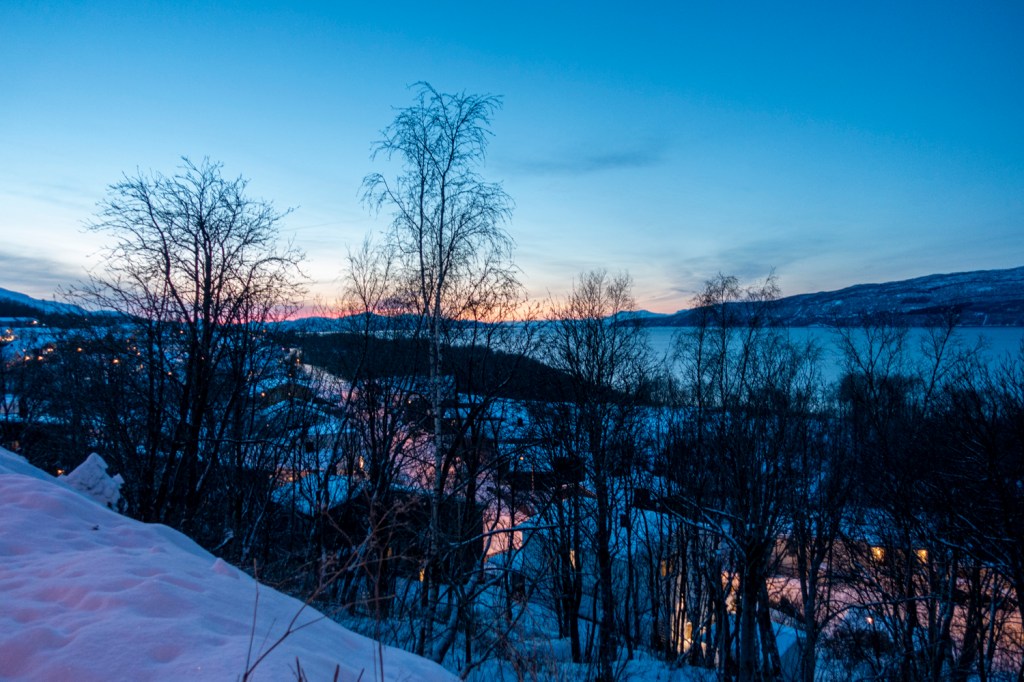 Nach der Ankunft in Narvik haben wir auf zwei längeren Spaziergängen den Ort erkundet und dabei einige schöne Blicke genossen. Leider war die Nordlicht-Aktivität heute gering und der Himmel erneut mit Wolken überzogen.