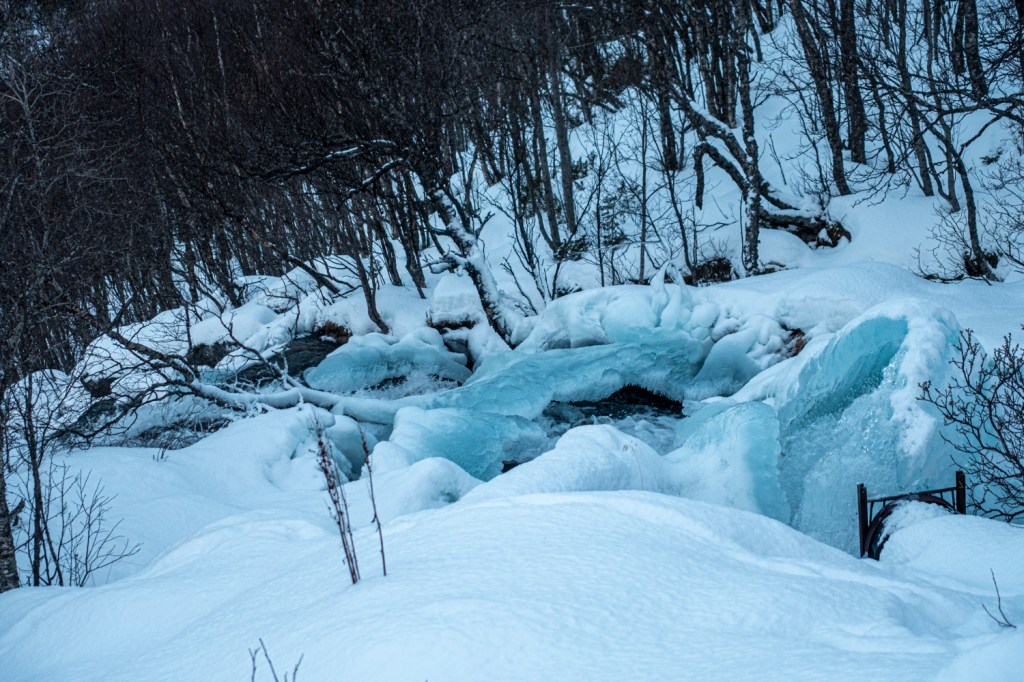 Auch Narvik heute: Die Gondelbahn fährt erst ab 15 Uhr – also nachts. Wegen Schneemangels ist nur eine kurze Piste geöffnet. Wir verzichten darauf, für Skiticket und -Ausrüstung je um die 100 CHF auszugeben und fahren nur aufs Narvikfjell, um Aussicht und Pizza zu geniessen.