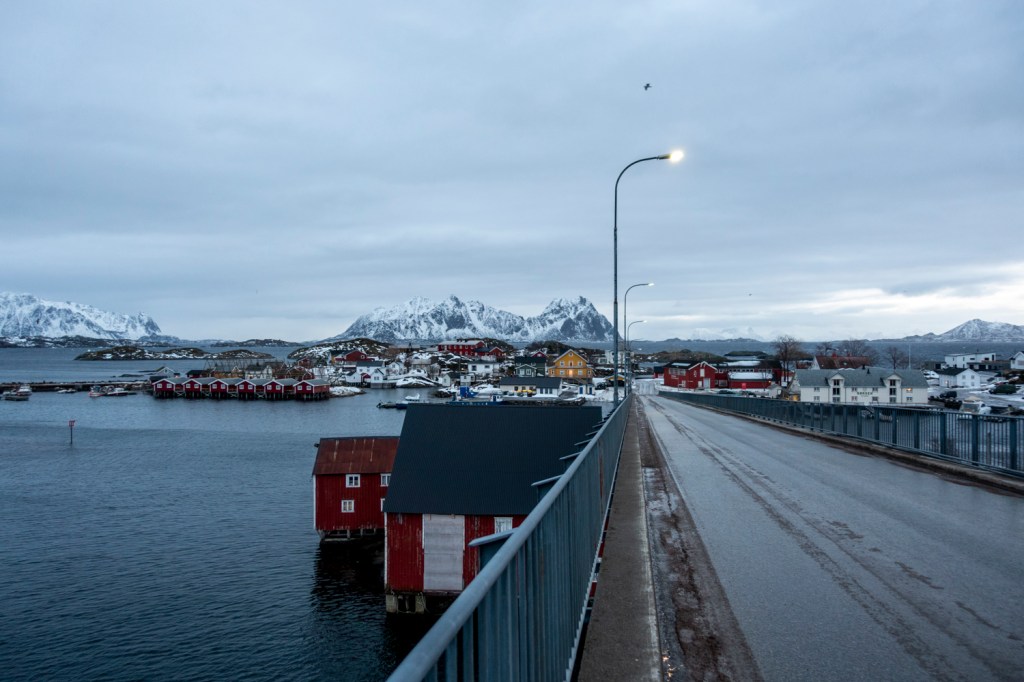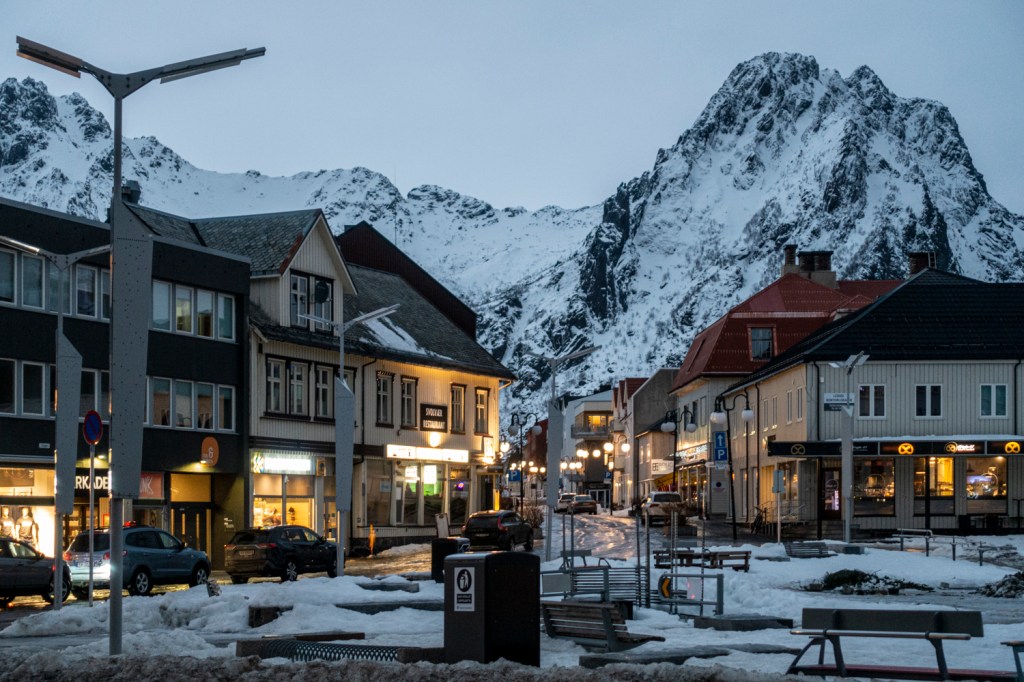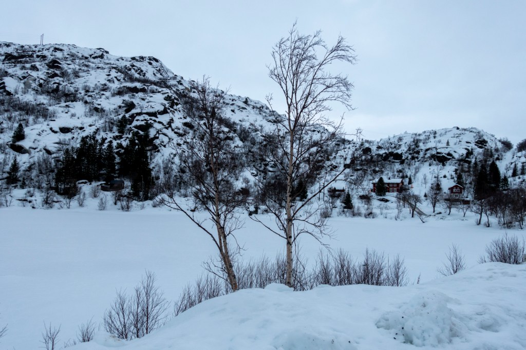 Der Golfstrom bringt warme und sehr feuchte Luft in den Norden, begleitet von starkem Wind. Wir bewegten uns heute auf Strassen und Gehwegen und diese sind aktuell eher mit Eisbahnen zu vergleichen. Dank unseren in Schweden gekauften Spikes kommen wir damit aber sehr gut zurecht. Wir machten bei Tageslicht und noch vor dem grossen Regen eine längere Wanderung durch Svolvær.