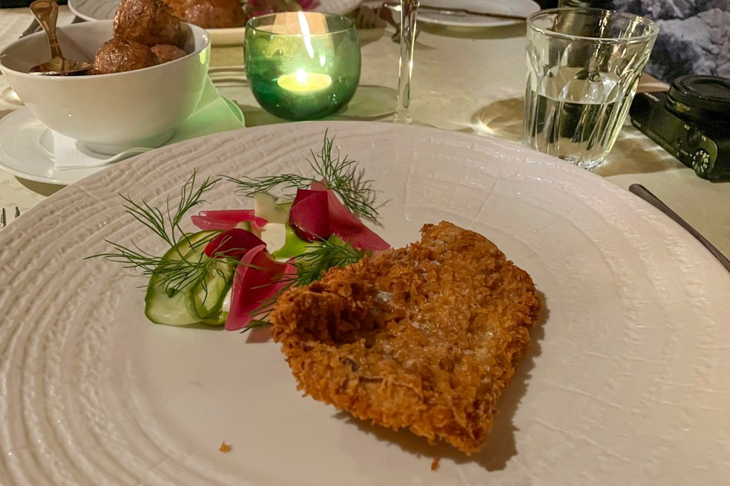 Am Abend assen wir in der Børsen Spiseri traditionellen Stockfisch. Auf dem Teller schmeckte er uns besser als er an den Trocknungsgestellen (siehe Beitrag von gestern) riecht.