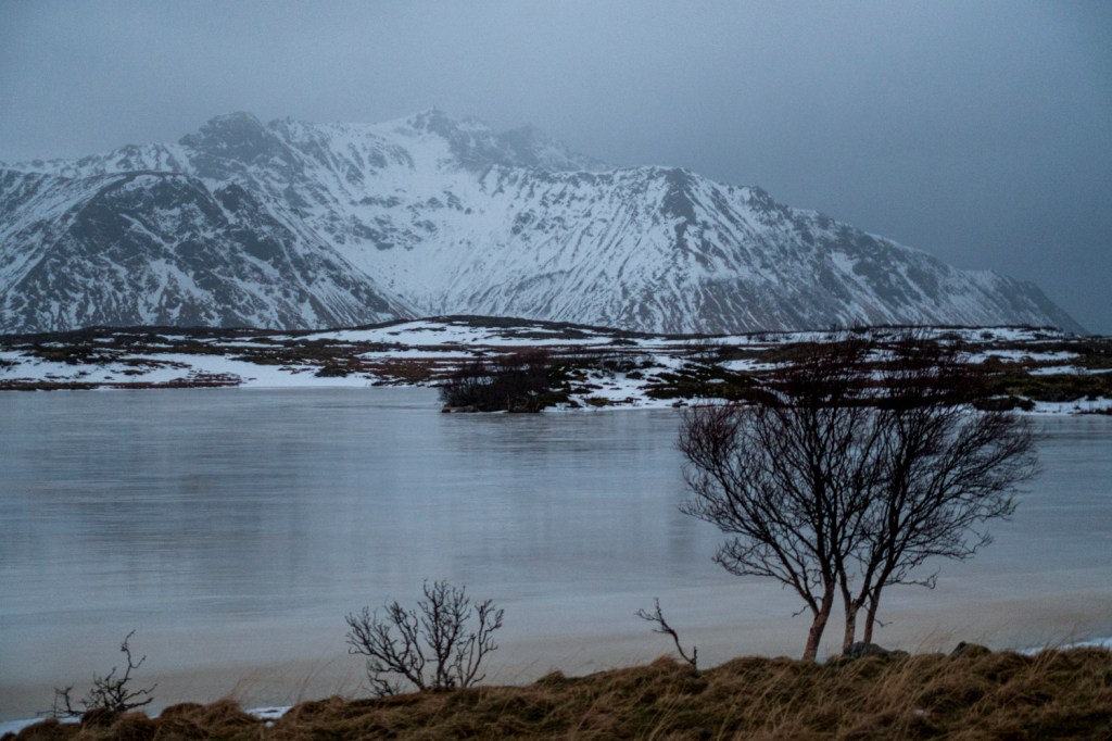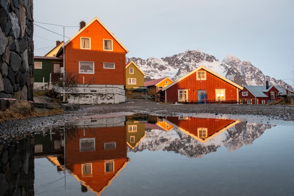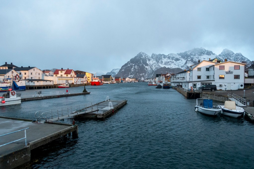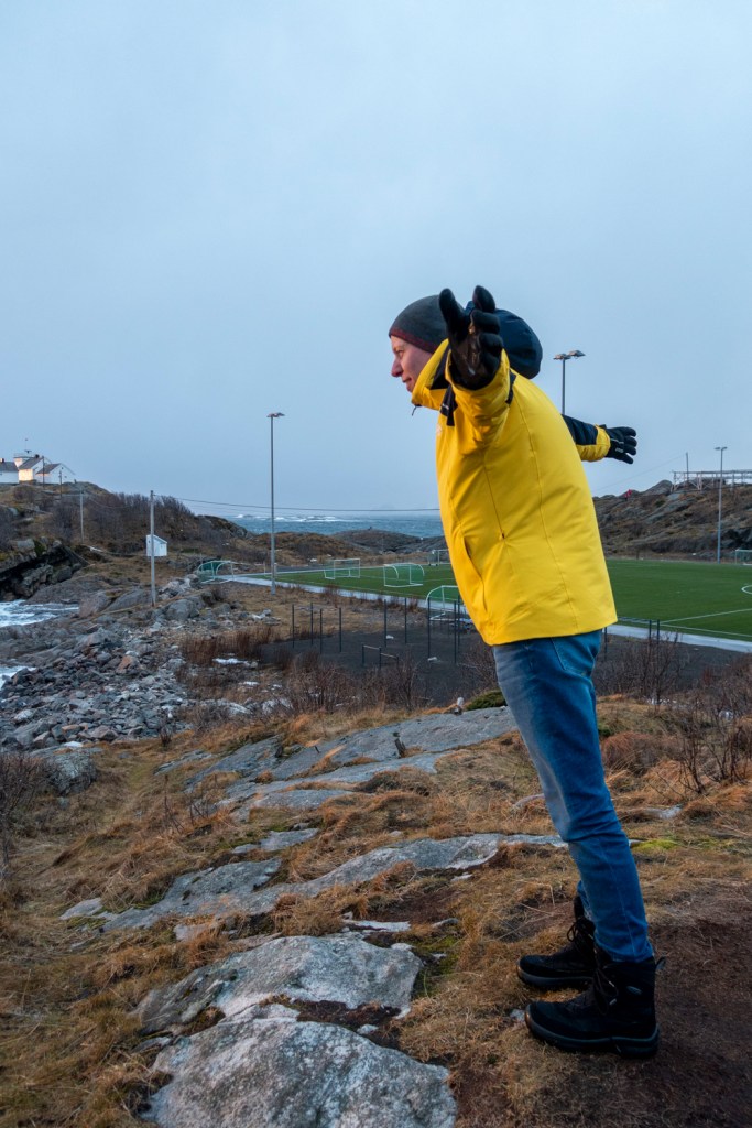 Wetterberichtgläubig wie wir waren, haben wir mit einem grauen, aber trockenen Tag gerechnet. Er begann aber regnerisch und war auch noch so, als wir in Henningsvær angekommen sind. Der Wind peitschte den Regen dermassen über das Inseldorf, dass wir nicht aus dem Auto ausgestiegen, sondern einmal durchs Dorf gefahren sind. Nach diesem unbefriedigenden Sightseeing haben wir den alten Clio parkiert und sind widerstrebend doch noch ausgestiegen.