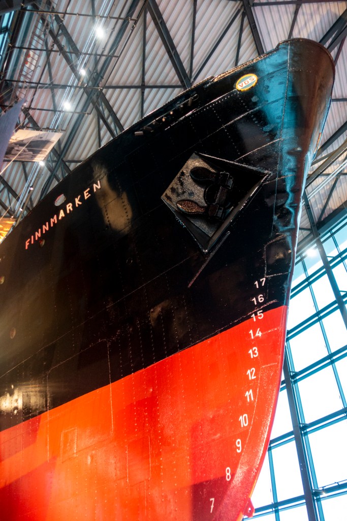 Wir sind mit Auto und Fähre nach Stokmarknes gefahren, um das Hurtigrutenmuseum zu besuchen. Es wurde rund um die 2. ‚Finnmarken‘ erbaut und macht das Schiff aus den 1950er-Jahren zu einem der grössten Exponate der Welt IN einem Museum.