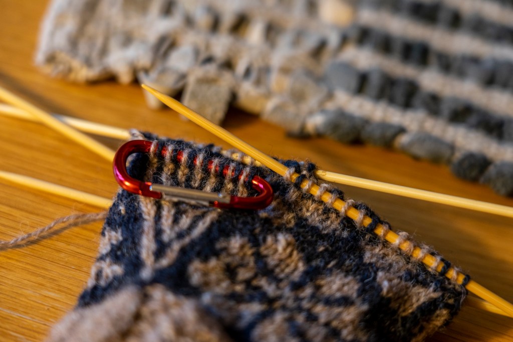 1. 😊 die Karabinerhaken habe ich im Handwerkergeschäft gekauft, bevor ich gesehen habe, dass ich im Supermarkt eine extra für diesen Zweck gemachte Klammer hätte kaufen können. Strickzubehör und Wolle gehören hier zu den Artikeln des täglichen Bedarfs 😅