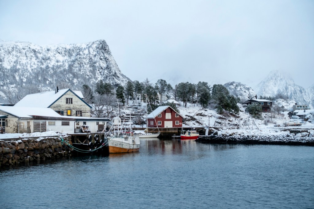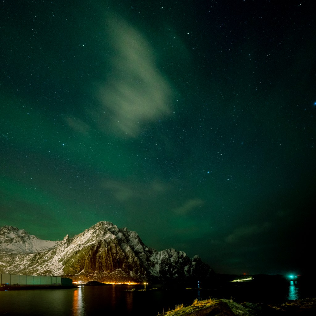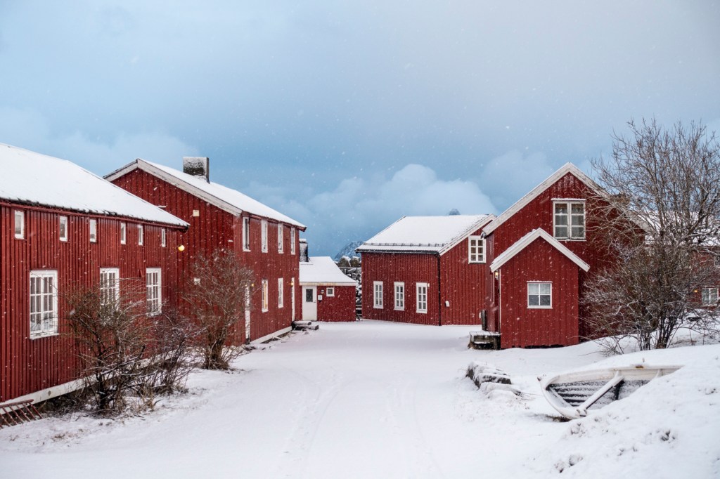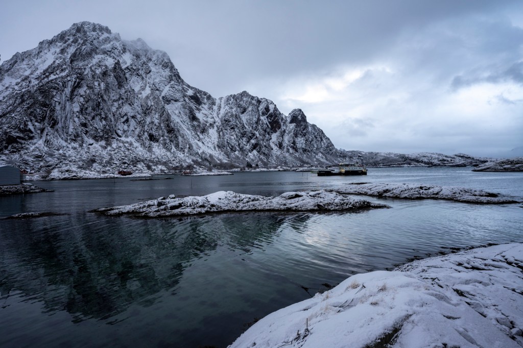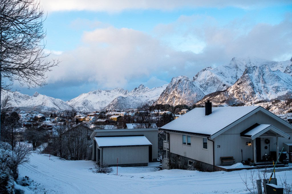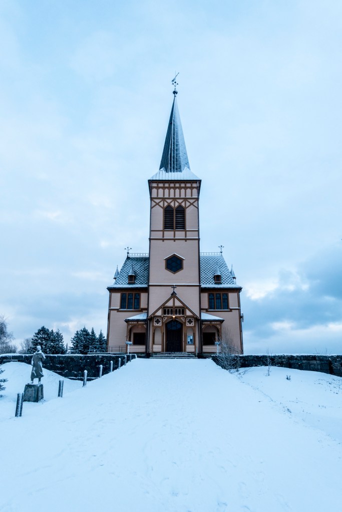 Das Wetter kommt ungebremst vom Atlantik auf die Lofoten zu, was wir auch heute wieder eindrücklich erfuhren. Am Morgen haben wir uns noch darüber amüsiert, dass es in der norwegischen Wetter-App ein Icon mit Sonne, Wolken und Schneefall gleichzeitig gibt. Zwei Stunden später hatten wir Sonne, Wolken und Schneefall gleichzeitig! Das Wetter änderte sich im Minutentakt. Wir nutzten den letzten ganzen Tag hier für einen Ausflug nach Kabelvåg, das vor allem für seine Kathedrale, die heute nur noch eine Kirche ist, bekannt ist. Sie war lange das grösste Holzgebäude Skandinaviens.