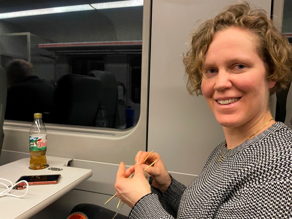 Mit Fotobuch gestalten, Kaffee trinken und Stricken kann man sich ja schon ein bisschen unterhalten, aber irgendwann wird eine Zugreise selbst mir zu lang 😛 Jetzt gerade fehlt noch knapp eine Stunde – auf Schweizer Schienen entspräche dies Züri-Bern, nur geht es hier viel langsamer und die tatsächlich zurückgelegte Distanz viel kleiner.