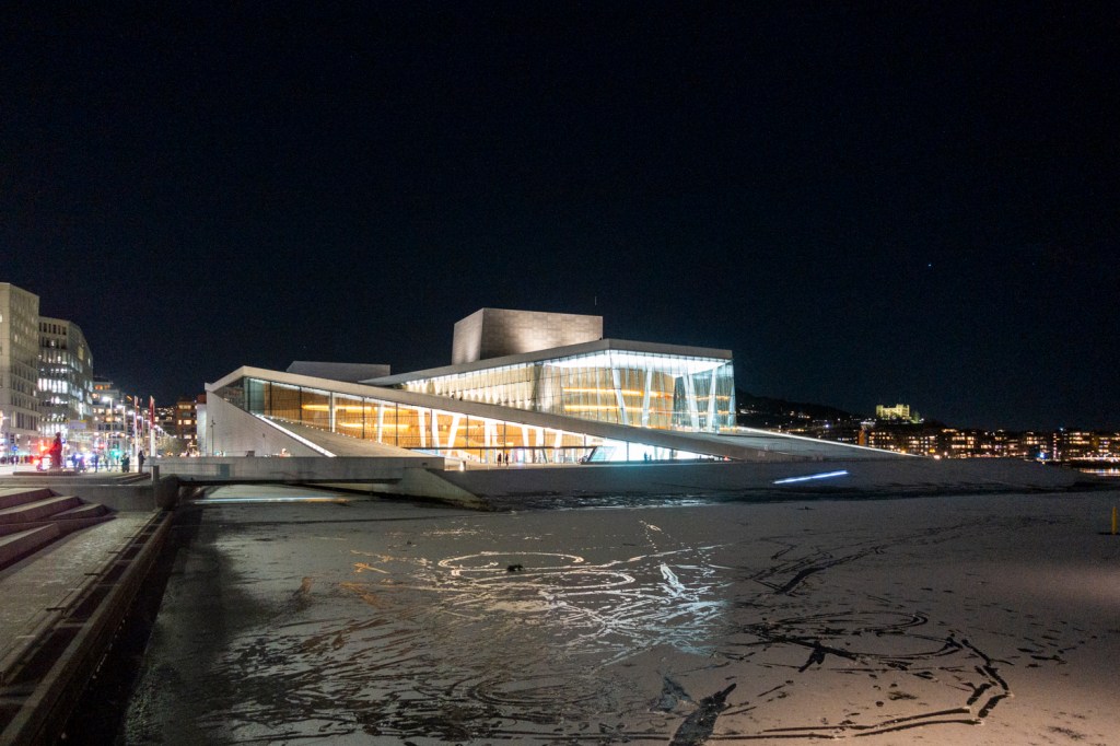 Gegen Abend trafen wir dann in Oslo ein, der letzten skandinavischen Station auf dieser Reise. Nach dem Nachtessen (kauft nie Pesto bei einem schwedischen oder norwegischen Grosshändler, ist irgendwie nicht fein) hatten wir einen Verdauungsspaziergang einmal ums Opernhaus und zurück nötig. In dem Quartier hat sich einiges getan, seit wir das letzte Mal in Oslo waren oder anders gesagt: Hinter der Oper hat es jetzt ein Quartier samt Munch-Museum neuer Volksbibliothek. Früher lag da eine Brache.